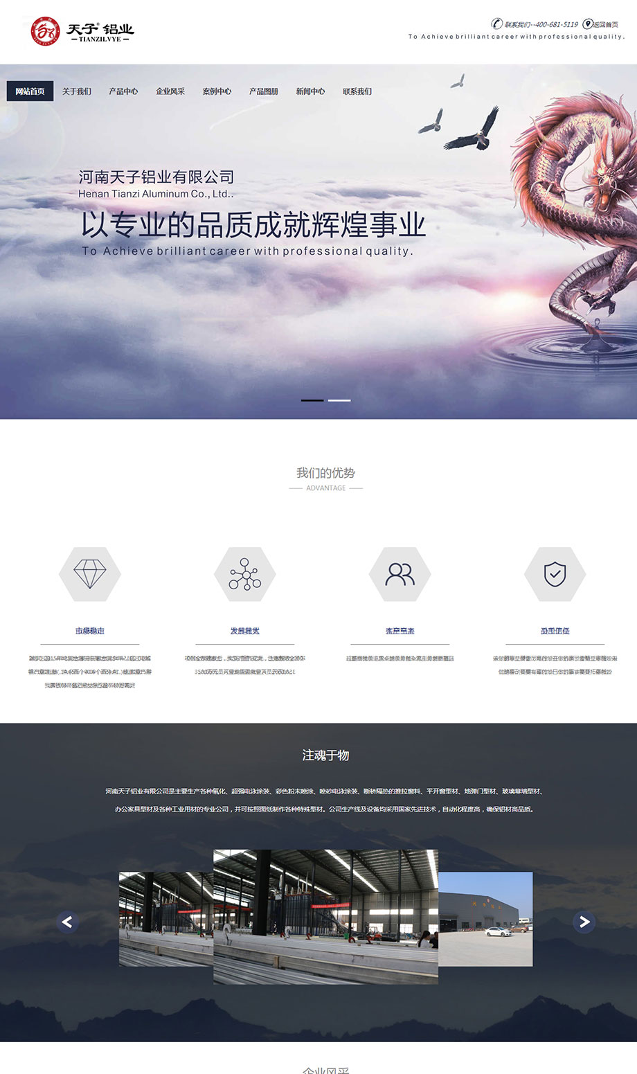 案例介紹:河南天子鋁業(yè)有限公司采用扁平化設(shè)計理念,彰顯企業(yè)高端大氣形象。